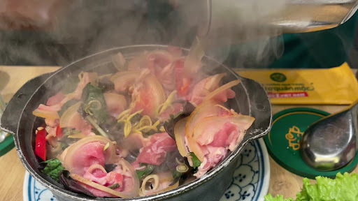 This was our second visit to this restaurant, and we had a great experience once again. The dishes we ordered included sweet potato in a nest, steamed and roasted young beef platter, rolled young beef in wild betel leaves, and steamed young beef with aromatic herbs. The roasted beef was crispy and delicious, while the wild betel leaf platter was a bit oily but still flavorful. The steamed beef with herbs was tender and tasty, and it pairs wonderfully with rice paper wraps. I highly recommend using salty fish sauce over fermented shrimp paste, though the shrimp paste is also a good option. The staff was attentive and polite, which made the dining experience even more pleasant. One downside is the parking, which is quite inconvenient as you have to walk quite a distance to reach the restaurant.