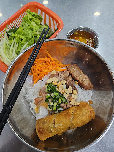 Read moreWe came in for a pretty early lunch right after they opened to avoid the lunch rush. The prices are great and the food was fine but nothing special. It should be noted this is one of a local chain. We asked for two bowls with everything (in vnese) and he repeated it back to me correctly but they came out with no nem nuong. You can get your first extra servings of bun and veggies for free and after that it’s a small charge per refill. I probably wouldn’t come again. Lots of motorbike...