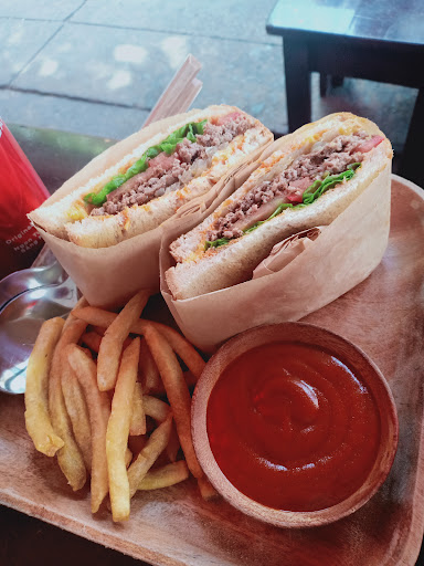 Mình gọi 2 phần bánh mì là "Ba Hí sandwich" giá 85k (phần đặc biệt của quán) ăn kèm nước sốt Honey garlic (vị chua ngọt: bạn nhân viên có nói đây là vị nước sốt được order nhiều nhất tại quán) và "Sandwich bò phô mai" ăn kèm sốt Buffalo (vị cay) giá 50k phần bình thường của quán. Và 1 phần khoai tây chiên thêm giá 30k. Vì không được tư vấn mỗi phần bánh sandwich đều có kèm khoai tây chiên nên mình đã gọi thêm phần đó chứ nếu biết thì đã gọi phần gà viên để dùng thử.