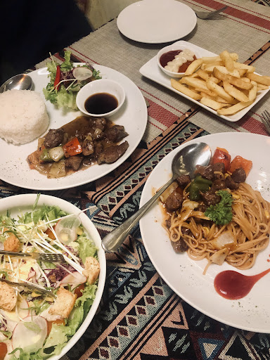Về đồ ăn, các món beefsteak tại đây nhận được nhiều lời khen về độ mềm ngon, đặc biệt là khi dùng kèm với các loại sốt cổ điển như sốt tiêu đen. Bên cạnh đó, các món ăn khác như súp bí đỏ, cơm hải sản risotto cũng rất đáng thử.