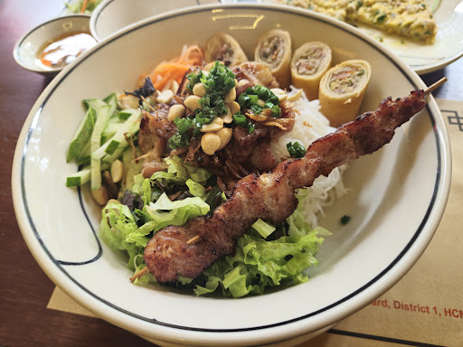 We were looking for food around Bui Vien and Ben Thanh market and found this lovely restaurant. I’ve been coming back here a couple of times since then. Everything we ordered were so tasty, fresh, “hanoi style grilled pork with vermicelli, “grilled pork spring roll”, “fried fish with fish sauce and garlic”, “minced pork crab soup” are my favourite. Lots of fresh herbs too, that’s what i love about it. The desert is the best, “cold pandan tofu puffing” is so smooth and nice, “flan with ice cream” and “blue berry yogurt” are so good, i eat them all the time. Service is attentive and fast, staff are so polite, i like!!!
