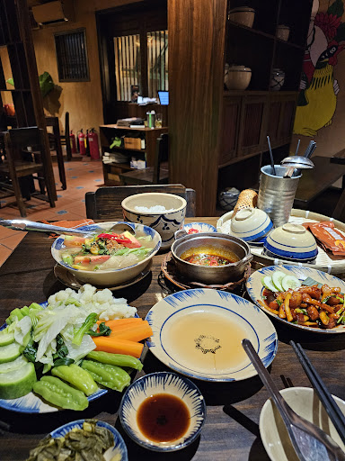 We made a reservation and came in around 6:30pm when there were only 3 tables besides us (read: not busy). We were not greeted by anyone upon seated or explained anything on the menu, while the lady at the front desk has been on her phone the whole time and two other waiters coming in and out of kitchen but not serving anyone anything. We looked at the menu on the table and had to walk up to the front desk to order. We ordered 2 appetizers, 1 hot pot and 1 drink for 2 of us. No one however was making us the drink after the order went in and all confused, we decided to ask if they can serve us the drink. The lady unwillingly left her phone went behind the drink counter, lo and behold, she scooped the longan juice from a bucket under the counter into a glass, threw in a pandan leaf and the drink was ready within 5 seconds! After another 20 minutes, our first appetizer fried tofu finally got here, alas, there is no shrimp paste dipping sauce that comes with it as the menu said it would. We asked the waiter who brought us food and with great effort translating he finally realized he made a mistake and super disgruntled, went back to the kitchen to bring us the dipping sauce. After another 5 minutes the fermented fish hot pot came. The entire time no one was coming by our table to attend the fire and mind you, there’d be sparkles coming from under the pot due to incomplete combustion and which, if you’re sitting too close to the pot, risks having your hair/eyebrows caught on fire. No service whatsoever. Food was meh for the price - the same fermented fish hotpot in Toronto where I live is about the same price. I regret not eating at a more down-to-earth food stalls which may even be prepared by people who genuinely care about the quality of the...
