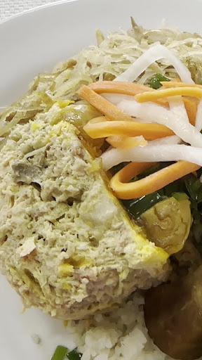 Rice with omelette, pork veggie, pork skin and soup it cost 130,000 VND.