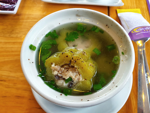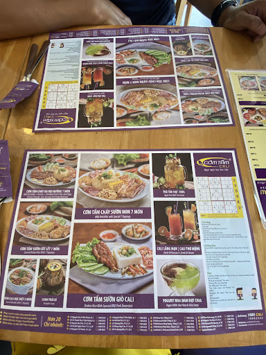 Read moreLâu rồi mới trở lại ăn ở Cơm Tấm Cali. Mình gọi cơm sườn cốt lết, bì, chả trứng + canh ổ qua... tổng cộng 152k bao gồm cả trà đá và khăn lạnh. Về đồ ăn: Bài trí đẹp, chỉnh chu, menu hơi ít lựa chọn. Sườn ăn được, mềm, không bị khô. Chả trứng không đặc biệt, không có mộc nhĩ nên ăn hơi chán, bì ăn được nhưng làm không kỹ còn dính lông heo. Đồ chua ăn kèm và cơm hơi ít, ai ăn khỏe phải gọi thêm, chê gạo tấm không thơm, dính cục... Đặc biệt khen canh ở đây khá ngon dù chỉ có 2 món là khổ qua và bí đỏ, rất chất lượng. Về không gian: quán nằm ngay bùng binh lớn dễ tìm, có chỗ đậu xe máy và ô tô miễn phí. Quán hơi nhỏ nhưng không cảm thấy chật chội, máy lạnh mát mẻ, khen sạch sẽ... Về phục vụ: thân thiện, phục vụ hơi lâu nhưng được cái đồ ăn nóng, bạn thu ngân nên nói chuyện nhỏ hơn một chút sẽ đỡ ồn. Về giá cả: món ăn không niêm yết giá trên menu - hơi khó chịu, giá hơi cao nhưng thấy hợp lý vì nằm ở vị trí đắt đỏ. Sẽ quay lại nếu có dịp...