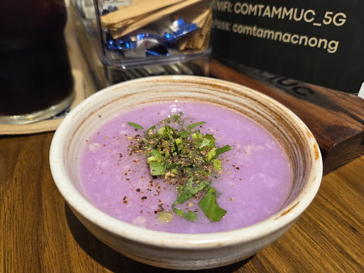 Tổng kết: Nhìn chung, hương vị cơm không có gì đặc biệt để tạo ấn tượng và khiến khách muốn quay trở lại, trong khi giá lại quá cao. Với trải nghiệm này, mình sẽ không quay lại. Not worth the price, the shredded pork skin was exceptionally bad. I ordered two dishes: the "Dinosaur" rice (cơm khủng long) and the pork neck rice with shredded skin, meatloaf, and a fried egg (cơm nạc nọng bì chả ốp la). Here is my experience: Portion: The amount of meat was quite small considering the high price of the dish. The rice portion was generous, and they used good quality rice. Taste: The marinated ribs were unremarkable. The meatloaf was average. The fish sauce was good and well-balanced. The worst part was the shredded pork skin (bì); it was honestly the worst I have ever had in my life. It lacked the typical toasted rice powder aroma and had a strange, slightly sweet and sour taste. Ambiance & Hygiene: The restaurant itself is spacious and clean. However, there is a major food safety concern: the ribs are grilled on the sidewalk right in front of the restaurant. This is a major street with constant traffic, so dust and pollutants undoubtedly settle on the meat. A clean restaurant doesn't mean much if the most critical cooking process isn't hygienic. Service: The wait time was very long. Even though I was the only customer when I arrived, I had to wait nearly 20 minutes for my food because they only start grilling the ribs after an order is placed.