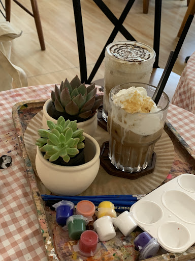 Read moreXem được review tiktok nên đi thử, tầng dưới nhìn vào thì như một quán cafe rất bình thường không máy lạnh, hơi hụt hẫng xíu, nhưng các bạn nhân viên dễ thương, tầng trên mới có máy lạnh và được decor trung thu, không gian tầng trên được xếp khá ít chỗ ngồi nên nếu quán đông bạn sẽ phải đợi có chỗ mới được lên trên. Quán có kết hợp với mô hình tô tượng nên rất đông gia đình có bé nhỏ và các bạn trẻ đến để tô tượng. Nước ở đây giá học sinh, sinh viên, vị bình thường, chủ yếu mọi người tới check in, và tô tượng thôi. Nếu quán chăm chút hơn về các món nước chắc sẽ OK hơn. Không gian tầng trên không quá rộng, nhưng quán cũng chăm chút decor khá xinh, bạn có thể đến đây trải nghiệm thử, nếu đông, bạn có thể đợi, khi có chỗ các bạn nhân viên sẽ sắp xếp cho bạn lên tầng trên. 5* cho thái độ của các bạn...