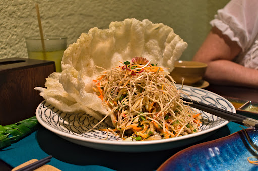 Vegetarian and Michelin-recommended? Ask me that a few years ago and I’d seriously doubt you, but I’d be instantly converted if you took me here to eat. The first thing your eyes feast on is the relaxed, inviting atmosphere, that’s climate controlled – a much-needed accommodation in the blistering Vietnam heat. The eye-catching appetizers are crafted with light, refreshing flavours that draw you in visually, as the big kids start rolling in. The polarizing salads are like two sides of the same coin, one is dressed with a salivating yogurt sauce that brings a creamy zing, complementing the scoop of raspberry sorbet that melts onto the salad, like an ice-cold volcano to deliver a fruity, sweet and tart depth on the salad greens, apples, oranges, and sacha inchi nuts. Meanwhile, the fried taro, bean sprouts, shimeji, enoki, straw mushrooms, carrots, cucumbers and fresh herbs bring a slightly hardier impression, with its bouncy and crisp mushrooms pairing wonderfully with the crispy root veggies and addictive passionfruit sweet and sour sauce, all served in an airy rice paper shell. Being such a versatile plant-based protein, my love for tofu is echoed by fried tofu, which started with the crispy egg tofu that’s tossed with a mouth-watering HK-style salty seasoning, decorated with tempura bits, crispy noodles and peanuts to triple-down on texture. The party in your mouth doesn’t stop there, as the herbaceous salt changed just enough while keeping the good parts – the tofu – to warrant another helping. The green curry, though? Not what you’d find at a typical Thai spot: sweeter and lighter on the coconut milk, which you’d totally appreciate if you were trying to be healthy and needed...