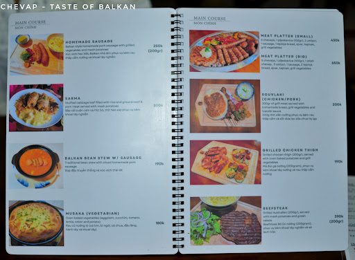 Món Ăn Thực đơn của Chevap - Taste of Balkan là một bức tranh phong phú về ẩm thực Balkan, với nhiều món ăn hấp dẫn, phù hợp với nhiều khẩu vị khác nhau. Dưới đây là một số món nổi bật: