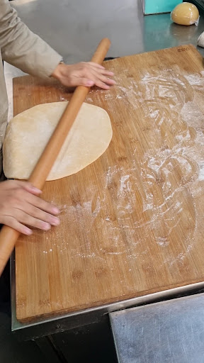 Món thứ 3 là mỳ cọng lớn Pappardelle được cán bằng tay và được cắt bằng tay với thịt Ragu cừu xông khói . 1 ngày quán làm những phần mỳ này với số lượng có hạn. Lúc mình đến được may mắn xem Bếp cán mỳ và cắt mỳ bằng tay. Bếp làm thấy cũng cực nhưng chất lượng sợi mỳ mềm xốp cực kỳ xứng đáng. Món này quán làm đúng ngon tuy nhiên đợi làm hơi lâu. Nêm nếm vừa miệng.