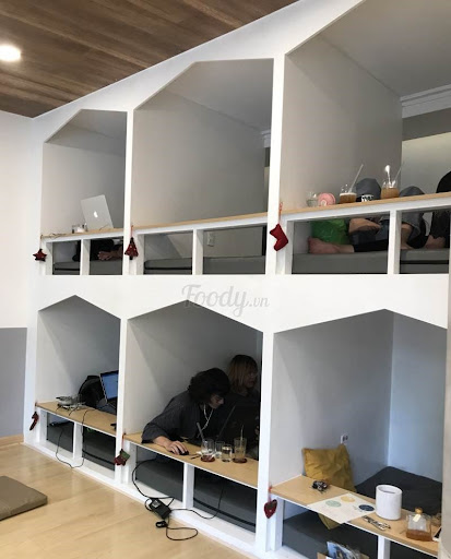 Rất bất ngờ về mọi thứ ở đây, rất mới mẻ cho trải nghiệm của mình. Có share space thì chỉ cần ord nước vs bánh thôi, nhưng private room là những dạng buồng con nhộng như ở bên nhật. Thuê room thì có cả combo nước luôn. Đăng ký thành viên sẽ đc giảm giá nữa. Ấn tượng là nhân viên rất là chu đáo luôn. Hầu hết đồ dùng ở đây đều là của Muji, xài rất êm rất thích. Không gian mát mẻ và rất là thơm luôn nha, tuy nhiên từng buồng nếu kéo rèm lại sẽ hơi nóng. Nước ở đây khá là ngon nha hợp vị. Điểm trừ duy nhất là vì là thuê private nhưng từng buồng chỉ được che lại bởi cái rèm, nên là lỡ có vui vẻ nói lớn tiếng thì sẽ bị nhắc nhở liền 😅 làm vậy thấy hơi k thoải mái lắm nhưng vì bên Nhật họ cũng rất im lặng trong quán cf nên là thôi, quán theo style Nhật mà. Chưa kể mấy cái ổ cắm trong buồng mình cắm sạc k dc, nhờ nhân viên cắm thử tất cả buồng khác đều k vô điện luôn. Nhưng khi mình về cắm lại thử ổ trong nhà thì xài bth 🥲 Lúc mình tới là 21h kém, mình đc nhân viên hướng dẫn lên 1 buồng ở tầng 2. Phòng dạng giường tầng nên khi leo lên buồng thì mình sẽ leo thang lên. Nhưng mình k hiểu lắm là giờ đó đã vãn khách rồi, tới lúc mình check out cũng k có ai sử dụng buồng tầng 1, vậy tại sao mấy bạn nv k cho mình vào tầng 1 luôn cho đỡ leo lên leo xuống.
