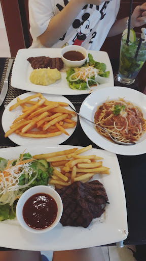 The food is something that throws me off when rating this. Despite great place, friendly staff and good service. The taste of the food is not great. I order the beef steak with red wine sauce and when I told them Medium Rare they ask: "What percentage is that?" and they recommend 40% and so I agree cause I don't know what percentage is Medium Rare. When they present the food after 20-30 minutes I review it: Salad: Great, variety and taste fresh French fires: To be honest, McDonald's fry is better than this. They didn't cut it evenly so some are crispy but most of it is just soggy and tastes unhappy. Steak: I order Medium Rare but they present it what I can presume is Rare and almost Raw through cause the inside was all red and very hard to cut through with the knife or my teeth. In conclusion, for 30 minutes I spend waiting for this meal is not worth it at all. But I give one more star for the service...