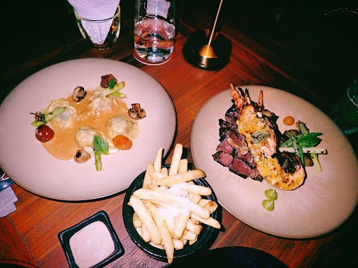 food - loved the grilled scallops, tasted fresh and clean with a sauce pairing that was unique! i also had the surf and turf, and the steak was phenomenal. there were lovely sauces that paired really well with the meats. the crab and shrimpy ravioli, however, felt a bit too overpowering and dense with the generous filling but flavour wise was good. everything else was really unique and refreshing and the menu is very well curated.