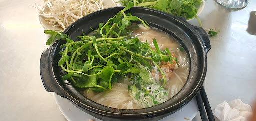 What I like about dining in Vietnamese restaurants is the mountain of fresh raw vegetables they give you. It was some sort of sprouts. The service staff don't speak English, but they do try to understand you. Google...