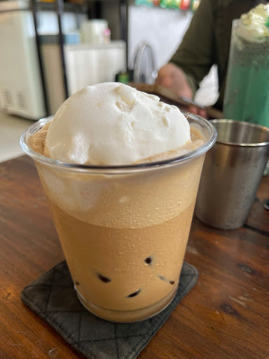 Khi kết hợp với kem dừa, hương vị càng trở nên độc đáo. Kem dừa mát lạnh, thơm ngậy giúp trung hòa vị mặn và đắng, tạo nên một tổng thể mượt mà, hấp dẫn. Uống một ngụm, bạn sẽ cảm nhận được sự hòa quyện tinh tế giữa các tầng vị – ban đầu là vị mặn nhẹ nơi đầu lưỡi, tiếp đến là vị ngọt béo mịn của dừa, và kết thúc bằng hậu vị cà phê đậm đà lưu luyến.