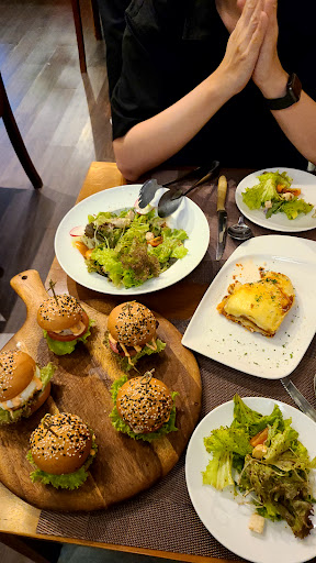 Read moreMe and my boyfriend ordered Mixed Brie Cheese salad with chocolate balsamic, one 200g medium rare Rib Eye steak, a homemade Lasagna, and a plate of Tasting burgers.