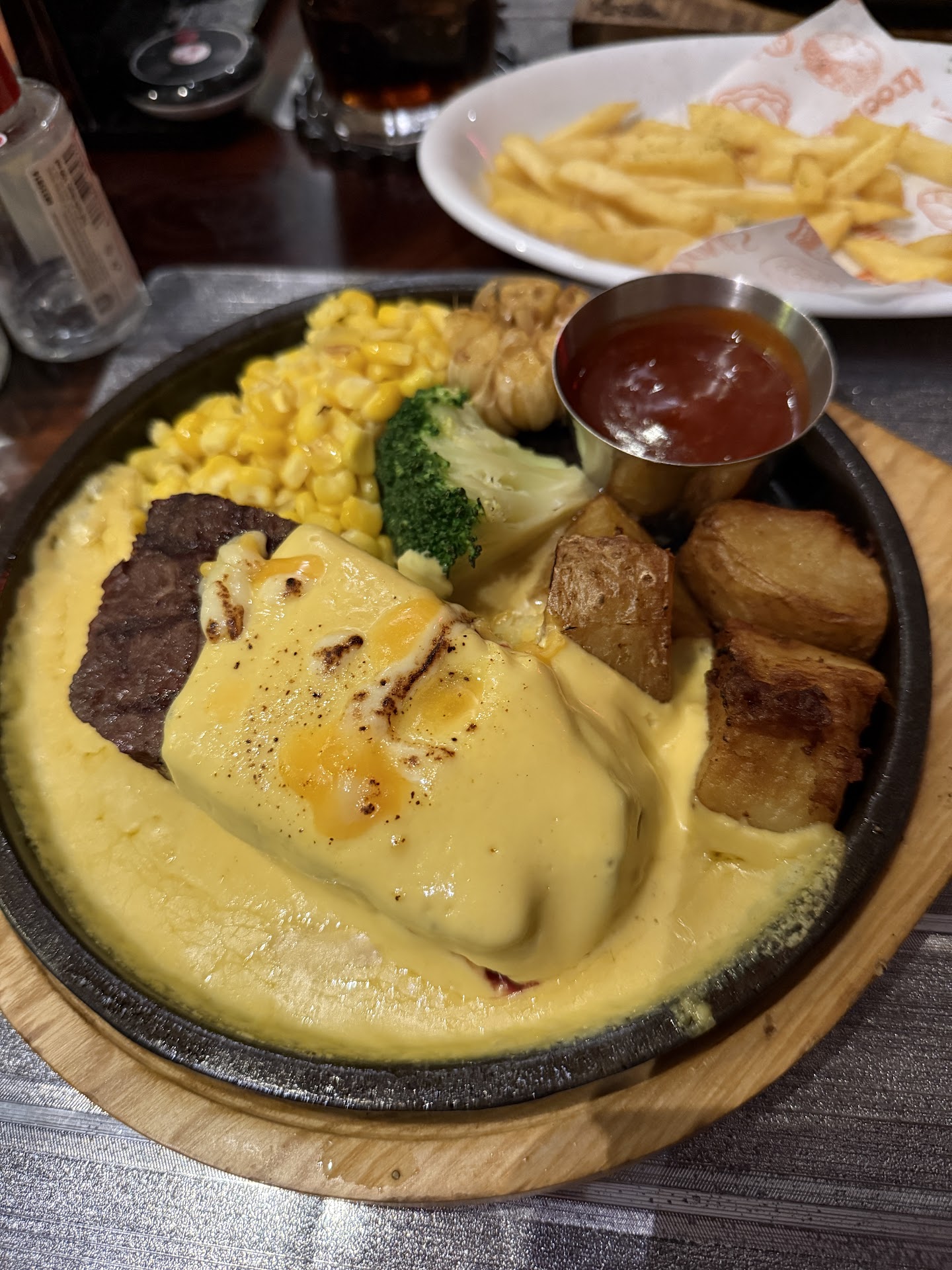 The interior and atmosphere are very good. The restaurant is nicely decorated, it is suitable for celebrations and also looks good if you want to take photos. Staff is welcoming and you can see that they truly try a lot and care about what they do and for their clients. However, service wise there is a place for improvement. For example, we ordered a steak with french fries on a side, and french fries were served 15 min before the steak, although they should be served together. By the time steak was served, french fries already got cold. Also, it was very nice that there were hygienic napkins offered on the table to clean your hands , however the ordinary napkins were missing from the tables. Also, the waiter didn’t ask if everything was fine with the food. As for the food, it depends on what you order. Beef spring rolls were good. BBQ sauce was excellent. Top blade steak was excellent - very juicy and tender. However sirloin steak was impossible to chew - very hard and rubbery. Mashed potatoes taste wise were fine, but the texture was quite sticky and not fluffy.