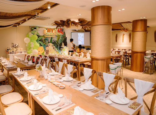 Read moreMình có đặt tiệc thôi nôi cho con mình ở đây. Không gian đẹp, ấm cúng, sang trọng. Đặt cho 60 khách và mình chọn phong cách bàn dài ( bình thường là bàn tròn ). Sảnh mình chọn là Tokin, mặc dù ở trong nhà nhưng được view ban công nên nhìn rộng và thoáng đãng. Món việt ăn ngon, phù hợp cho người lớn và trẻ em. Trang thiết bị loa (không hay lắm), máy chiếu, trang trí backdrop đều đầy đủ. Đậu xe hơi, xe máy trước nhà hàng. Nhược điểm: bạn nhân viên chốt sale ( hỗ trợ ) hơi chậm, hơi bận rộn, nhớ nhớ quên quên, điều khoản hợp đồng ghi rõ ràng đầy đủ là bàn dài, mình lên trước 30 phút thấy bàn tròn, yêu cầu setup lại. Quản lý đã huy động nhiều nhân viên hỗ trợ setup nhanh trong 10 phút về bàn dài với trải bàn, ghế, hoa, chén đĩa... đẹp đẽ . Cảm ơn rất nhiều, tiệc thôi nôi thành công tốt đẹp, ai cũng khen đẹp...