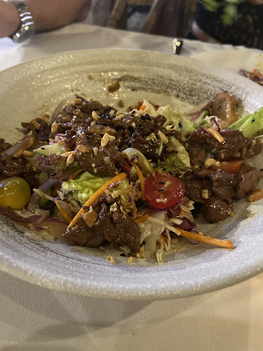 • Atmosphere: 4/5 Mamma Mia is in a beautiful, picturesque location right by the Saigon River. We visited with another couple for Valentine’s Day and really enjoyed the outdoor seating with the river view. However, if you’re sensitive to smells, you might want to avoid sitting right by the water, as there are occasional odors coming from the river. Additionally, multiple nearby restaurants have live bands, and the music tends to overlap, which can make for a slightly chaotic soundscape rather than a relaxing ambiance. • Service: 3.5/5 The staff was clearly working hard, as we noticed them constantly running around attending to tables. However, the service felt somewhat disorganized. Our starters arrived almost at the same time as our main courses, except for the seafood BBQ plate, which came out 15-20 minutes after everything else. By the time it arrived, we had already finished our main dishes. Getting the bill was another challenge—it took another 15-20 minutes before we could settle up. Sitting by the river also made it difficult to flag down a server when needed. • Food: 3/5 We ordered a variety of dishes, including the Greek and Thai beef salads, sweet and sour fish, pizza, chicken pesto pasta, and the seafood BBQ plate. Overall, the food was mediocre in flavor. The chicken pesto pasta was quite bland,I had to request salt to add some flavor. The pizza had a cardboard-like texture, and while the pizza itself was edible, it wasn’t anything special. The Greek salad was heavily overdressed and had very little feta or olives, which made it disappointing. The sweet and sour fish was the most flavorful and enjoyable dish of the meal.
