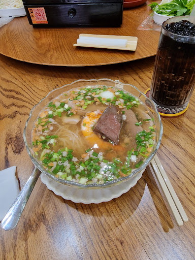 Read moreThe restaurant has 5 stars, and as I was walking by, I noticed the famous Vietnamese bun that I had never tried before. I decided that it simply had to be excellent here. I asked if there was any fat inside, and they said no. They even emphasized that they separate the meat from the fat. As a result, the bun was very dry, with pieces of gristle and chewy bits. It was hot as hell, and the bun stuck to the mat it was lying on and the napkins around it, separating only from the dough of the bun itself. There are no napkins on the table, so I don't know where to spit this bun, and there is nothing to wipe my mouth and hands with. A group of people are sitting at the table next to me, shouting so loudly that I'm sure they can be heard on the street. Apparently, this is normal, so I'll give the atmosphere a thumbs down as well. Although the menu looks great, and so do the food, drinks, and even desserts. If I pass by again, I'll stop in, and if I like it, I'll revise my review. But for now,...