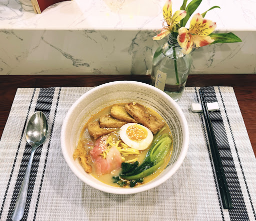Về món ăn: Hikari Vegetarian phục vụ thực đơn phong phú với các món chay được chế biến từ nguyên liệu tươi ngon, đảm bảo vệ sinh an toàn thực phẩm. Mình đặc biệt ấn tượng với món mì Tamago Ramen, sợi mì dai ngon, nước dùng thanh ngọt đậm đà hương vị rau củ.