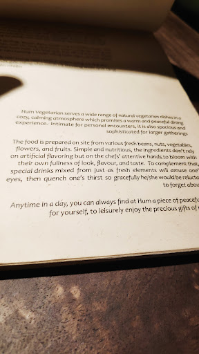 The staff was attentive and knowledgeable, providing excellent recommendations and ensuring a seamless dining experience. Whether you're a dedicated vegetarian or simply looking to explore meatless options, "Hum" is a must-visit. It combines exceptional food and a captivating atmosphere for a memorable vegetarian dining adventure. I can't wait to return!"