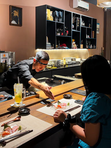 The setting is intimate and cozy, with only a few seats, making the encounter feel personal and unique. From this close perspective, you can admire the chefs’ mastery as if you were part of a private performance. From the outside, the place may not catch your eye, but once you climb a small staircase, you discover a warm Japanese-style dining room that feels like a hidden gem in the heart of Ho Chi Minh.