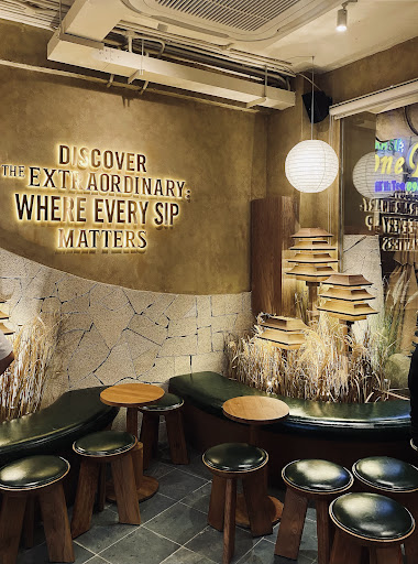 Nói chung không gian ở đây không rộng lắm nhưng được cái ưu điểm là có tận 1 tầng trệt và 3 tầng lầu, tầng dưới là khu vực order và quầy pha chế khá lớn nên không gian còn lại chỉ đủ cho khách chờ nhận nước, 3 tầng còn lại được lắp full kính bao quát hết mặt tiền và kịch trần nên sẽ thấy toàn bộ khu vực vòng xoay, lung linh về đêm và đón hết ánh sáng tự nhiên vào ban ngày, tối đa hoá không gian nên sắp xếp được khá nhiều bàn ghế, không gian nhỏ nên cầu thang cũng nhỏ nhưng bù lại chi nhánh này có lắp thang máy nên sẽ tạo sự thoải mái hơn cho khách hàng khi đến, đây là chi nhánh mà mình thấy có phần độc đáo và phá cách hơn một chút so với các chi nhánh mới mở gần đây với thiết kế tương tự, phong cách kiến trúc Nhật Bản kết hợp cùng những đường nét chấm phá hiện đại phá cách tạo nên tổng thể khá hài hoà và cũng rất riêng biệt.