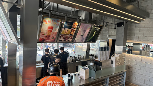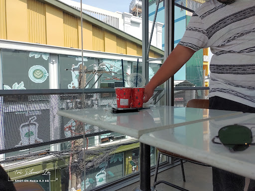 Đông, rất đông khách nên đợi ở line cũng lâu, đợi order xong phải tiếp tục đợi lấy nước nữa nên càng lâu hơn do chỗ này style tự phục vụ chứ không phải như quán cóc bình dân. Khuyên chân thành một điều là order xong thì nên ngồi lại ngay quầy để đợi nước luôn chứ mắc công leo lên leo xuống mệt. Giá thức uống rất cao, cao hơn cả Phúc Long đối diện. Cafe uống tạm được, không ngon như mấy chuỗi chuyên cafe khác. Không gian quán và phong cách trang trí, concept nhìn cũng khá lạ mắt, nhưng vẫn rất đẹp và ấn tượng. Mình gần 30 tuổi rồi, bước vô quán ngồi nghỉ trưa làm việc xíu mà thấy lạc lõng ghê gớm. Quán toàn các bạn trẻ và rất trẻ, hầu như tại thời điểm mình ngồi đây thì ko thấy ai trạc tuổi mình cả Ghế ngồi thẳng lưng và lưng dựa rất ngắn, nên ngồi xíu rất đau lưng, phải dời qua bên chỗ sofa sát vách ngồi. Ổ cắm rất ít và hạn chế. Quán có 2 lầu, lầu 2 nóng hơn so với lầu 1, chọn chỗ ngồi nên né cửa kính ra, chỗ cửa kính ngồi nóng lắm, do nắng hắt vô và vị trí này khá xa điều hoà (mình ngồi nửa tiếng phải đổi sang ngồi chỗ khác cho mát) Điều mình ko vừa ý nhất là quán rất chậm chạp và dường như không quan tâm đến việc dọn dẹp bàn sau khi khách rời đi. Bàn dơ, rác để đầy trên bàn, 2 lầu mà thấy có mỗi 1 bạn dọn dẹp lâu lâu mới thấy lên dọn bàn, làm mình hết chỗ ngồi phải tự lau chùi dọn dẹp rác của khách trước để lại mới có chỗ để ngồi. Khổ cái là quán cũng không có thùng rác luôn, nên dọn xong cũng chả biết vứt ở đâu Mình tiện đường ghé uống lần cho biết thôi chứ nếu được chọn sẽ ngồi Phúc...
