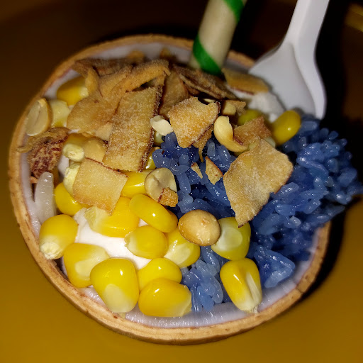 Anh chị chủ hiền lành dễ thương lắm nha, kem xôi ngon sạch sẽ. Dừa ăn tới đâu chặt tới đó + cạo cơm tại chỗ + kèm ly nước dừa nhỏ từ trái đó luôn, xôi thì nấu từ gạo nếp và nước hoa đậu biếc nên có màu xanh rất đẹp mắt, ăn ngọt thanh không bị gắt đường nha, có rắc đậu phộng, dừa khô với hạt bắp mỹ. Tổng chỉ 25k/phần. Sẽ ghé ủng hộ nữa 💯