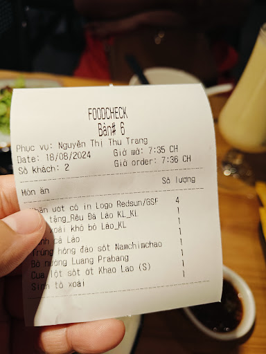 We ordered a set for 2-3 people which includes 4 dishes, a portion of sticky rice and 2 drinks for 419k vnd. Food is super delicious 🤤. It's started with 2 drinks of your choice, either 2 cokes or 2 glasses of artichoke tea or 1 of each. Artichoke tea is sweet and sour. It reminds me of the black current juice but less sour. The 1st dish is fried shrimp paste - it is soft and so tasty & crunchy because of the breadcrumbs outside. Papaya salad is served without meat and the flavour is spicy and sour - a bit like Thai food. You can add lemon juice for more sour flavour as you wish. For the pork lard dish, it's served with "lá lốt" leave which is used to wrap the food and the spicy & sour sauce for dipping. The last dish is the fish hotpot served hot in a pot with a candle 🔥 below. The service is quick, we finished ordering, eating and paying within 45-50 minutes (due to the scheduled taxi). Overall, the set is definitely worth the money, and all of the dishes and drink are delicious. The restaurant is located inside a shopping mall so the hot weather won't bother you there 😉. It was my first time trying Laos food and I was not let down. Highly...