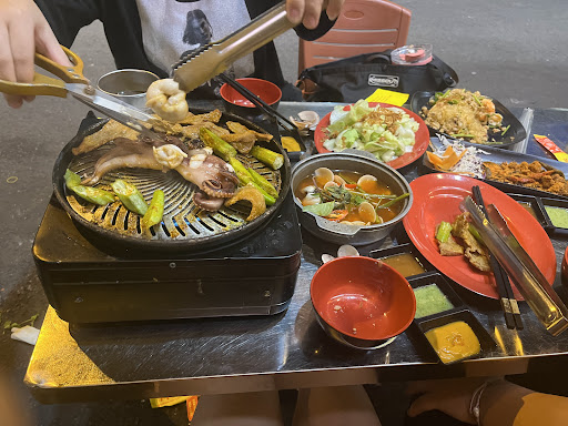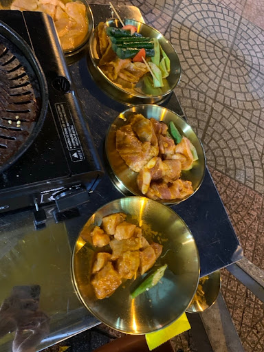 1️⃣ Món ăn Các món ăn với vị ướp sốt bình thường, không đặc sắc, không ngon, mình gọi vú heo, ba rọi heo, ba rọi bò mĩ, nọng heo, bò lá lốt, mực (k tươi) = đánh giá tổng thể là KHÔNG NGON Cơm chiên cá mặn, đựng trong thố sắt = vừa khẩu phần ăn 2 người, vị ok. Sụn gà chiên nước mắm = không ngon so với các quán mình từng ăn trước đây. Nước uống free(các loại nc ngọt, nc sâm) , mình chọn nước sâm = cho bớt ngọt ai dè nó SIÊU NGỌT luôn. 2️⃣ Nước chấm Có 3 loại: muối ớt xanh, chao, sốt me = ăn tạm, theo mình muối ớt xanh ngon nhất!