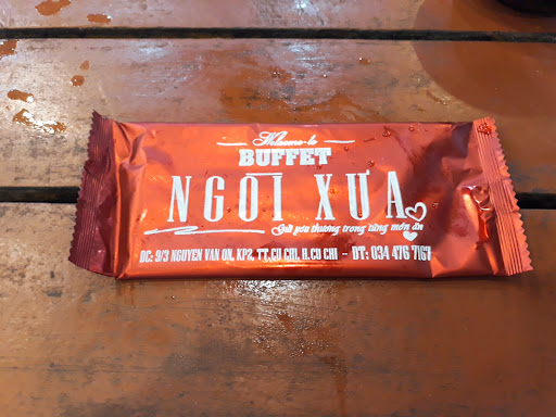 Tuy buffet Ngói Xưa nằm trong hẻm nhưng cũng dễ tìm vì có bảng chỉ dẫn. Giá 119 tất cả các ngày trong tuần, trừ lễ tết. Nước suối 10k/chai. Khăn lạnh 2k/cái. Đồ ăn phong phú với nhiều sự lựa chọn. Vị các món ăn khá vừa miệng, nước chấm có nhiều loại. Đồ nướng có sườn non, thịt heo (không biết phần nào nhưng giòn giòn ngon 😆), vú heo, ba rọi cuộn nấm kim châm, bò cuộn nấm kim châm, bò cuốn lá lốt, chim cút, ... Ngoài thịt còn có hải sản nướng như hào, sò lông, sò vẹo, sò điệp, ốc lát, tôm (nhiều đến cuối buổi vẫn còn đó mọi người), cá kèo ... Lẩu có gì thì mình không biết do mình đi lúc 7h30. Ăn xong đồ nướng thì lẩu đã không còn để thưởng thức rồi 😭. Quán còn có nhiều món ăn sẵn như rau luộc kho quẹt, gỏi củ hũ dừa (chua chua ngọt ngọt ngon lắm nha 👍), thịt luộc bánh tráng - bánh hỏi, chả giò, xúc xích, cánh gà chiên, ếch chiên, cơm xào, mì xào, súp, các món ốc sò luộc. Tráng miệng cũng có nhiều loại như mận, dưa hấu, yaourt, ... Có 1 điều hơi hồi hộp là quán nướng than nhưng ăn lẩu lại dùng bếp gas. Lò than âm được đặt cố định ở giữa bàn rồi. Bàn bên cạnh mình vừa nướng vừa ăn lẩu, cái bếp gas với lò than rất gần nhau, làm mình bên đây vừa ăn vừa thấp thỏm, khá là...