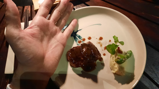 Ordered the 6 course meal, and left starving!!! Check out the size of the main course as compared to my hand! I thought it was a joke when the food was served.