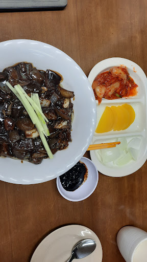 Korean restaurant with typical Korean-style Chinese dishes such as black soy sauce noodles, seafood noodles, sweet and sour pork... Delicious food, 1 serving is a lot, so compared to the price, it's quite ok. Fast service restaurant with...