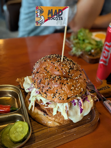 Iāve been reluctant to visit Mad Roosta because of their marketing, which promotes gratuitous amounts of cheese to the point of diabetic illness. However, I decided to try the restaurant and see if they would moderate the toppings on my burger, and I was not disappointed.