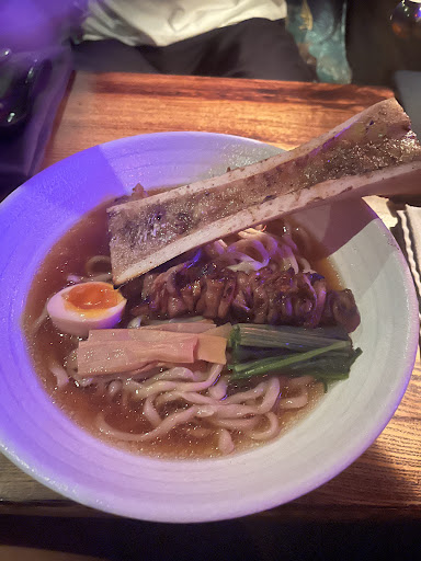The food however is good but not great and certainly not up to standard for the price they charge. The karage (Korean battered chicken) with caviar was good of taste but lacked finesse and elegance which you would expect for an entree of 185€ entree for 2 people. The glass of champagne that was included tasted very sour and wasn’t that bubbly enough. The main was the wagyu ramen of 35€ which was plated very beautifully but lacked flavor and the texture of the ramen noodles was too hard and also too thick in my opinion. We also ordered a few cocktails, tasted ok but didn’t have to wow-factor which you would expect from a cocktail & food bar.