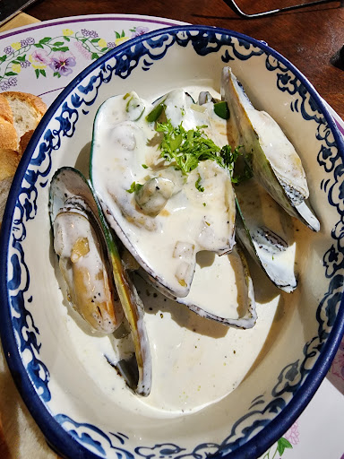 We came because my husband has been missing chicken wings, and this spot has the best ones. He gets it without sauce, but we did try the Buffalo sauce. And it's not the same as the states. If you are unsure, just ask for it on the side. I also tried their quesadilla. If it comes in small or large. Protein options include chicken, pork, cheese, and vegetarian. Served with guacamole, sour cream, and Pico de Gallo. That's my go-to dish. I love it with chicken. Next dish I highly recommend are the muscles in the wine cream sauce served with sliced baguettes. Chefs kiss, I loved the muscles! I also tried the fries with pulled pork. I liked the pull pork but wanted more of it. It was more French fry heavy and protein light. But other than that, it was delicious!