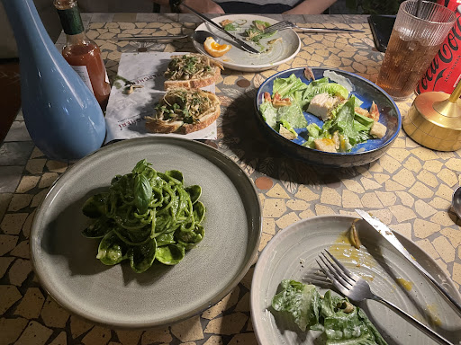 -Chicken Caesar salad: the hugee chicken breast surprised me but oh my it was one of the most juicy chicken breast I ever tried. Salad dressing was nice and not too overpowering. This could easily be shared between 3-4 people as a starter. 5/5 -Mushroom Bruschetta: bread is tiny bit too hard for my liking but sautéed mushroom was really nice. 4/5 -Spaghetti pesto with clams: the nicest pesto sauce I ever tasted. So cheesy, nutty and sooo green. Spaghetti is perfectly al dente and clams are so fresh. I was gutted that the portion is quite small but I remember pastas are meant to be Primi so that portion is perfect for 1-2 people. 6/5 (I will try the seafood pasta next time) -Pizza (half 6 cheese and half beef brisket): authentic napolitan pizza. The dough is baked perfectly with nice fragrant I can’t explain. Tomato sauce on beef brisket side is so fresh and the 6-cheese is so cheesy lol. I wish there were a bit more honey on the side as dipping sauce. 5/5 -Affogato: this was unplanned but I decided to try it anyway as affogato has a special place in my heart. I have tried quite a few versions from a few places including in Italy. I would say it’s not the best I have tried but definitely not bad at all. I find the vanilla scent in vanilla ice cream is somewhat a tad overpowering. Also I wish the hot espresso was served in a separate cup for customer to pour on to ice cream themselves to make it the most fresh. This is probably the most underwhelming dish out of all but I will try other dessert options next time (I love tiramisu!). 3/5