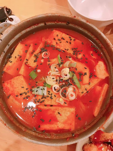 Giờ mình Review và cho điểm từng món mà mình đã thử nha: 🍗 Gà viên sốt mật ong (6/10): Áo lớp bột khá mỏng và giòn, bên trong đầy thịt, cắn vào bạn sẽ cảm nhận được vị ngọt của mật ong, cùng độ giòn của lớp bột và độ béo của thịt gà. 🍲 Mì hải sản chua cay (7/10): Phải nói nó còn ngon hơn mì cay ở các tiệm khác, nước đậm đà, dễ ăn, mì nhiều, 2 con tôm khá chắc thịt, các topping khác cũng nhiều. 🍛 Cơm trộn truyền thống (6/10): Mình ăn thử cơm trộn ở nhiều nơi, cả ở quán Hàn lẫn các quán Buffet của Hàn, nhưng ở đây mình thấy khá ngon và dễ ăn, có trứng lòng đào nữa. Điểm trừ là trộn xong ăn hơi ngọt 🍚 Bánh gạo phô mai (7/10): Bánh gạo được làm vừa đủ nóng, phô mai bên trong vừa đủ tan, cắn vào phô mai ứa ra phê lắm mấy bạn :))), đặc biệt nước súp rất đậm đà, sò điệp hay chả cá đều thấm, ăn phải nói là không ngán do nước súp mỗi món mỗi khác tuy nhìn hình thức thì giống nhau