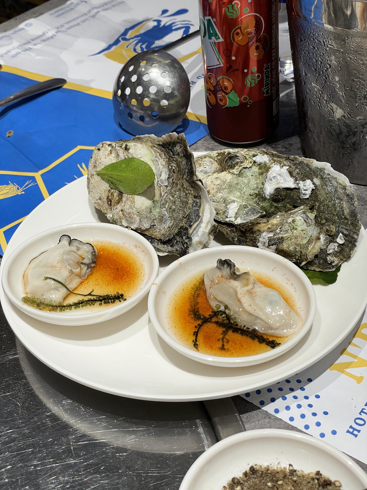 Read moreMình ăn buổi trưa hôm 22/02/25, không có Tôm Hùm, Tôm Tích, Tôm Mủ Ni như ảnh quảng cáo. Toàn là Tôm, Cua, Mực rất bình thường luôn. Nêm nếm cũng không quá đặc sắc, hơi mặn, đậm vị. Sashimi cá hồi thì cắt cũng đày đặn, nhưng sashimi ở đây không được để lên khay đá làm mát, trưng bày ra một lúc là hết mát, ăn rất chán. Điển hình như 2 miếng cá ngừ mình lấy, ăn rất chán, phải nhả bỏ luôn. Sashimi cá trích thì không hiểu sao lại chua quá. Con nhum thì có chút xíu, cái muỗng thì quá to, thành ra dùng muỗng múc nó bể phần vỏ rớt ra vụn vụn hết hứng ăn luôn, ăn như bánh đúc, chả có vị gì, mình lấy 3 con ăn thử rồi thôi. Hàu hay mấy con khác nướng phô mai thì phô mai khá khô. Ốc len xào dừa không ngon, nước cốt dừa quá loãng, ăn chán. Cua thì bé, bóp cái càng ra có chút xíu. Dụng cụ bóp cua đúng chán, khe quá to so với càng cua :)))) mà loại này không há bự ra để bóp phía trong của kẹp được, thành ra mình cắn luôn cho nhanh. Mực hấp thì kích cỡ ổn, ăn cũng được. Dim sum ăn được nhé. Điểm cộng là quầy chè, tủ yaourt, bánh, kem,... Chè ngon, lưu ý ai thích nước của chè dưỡng nhan thì đừng gọi nước uống cho tốn tiền, ra quầy lấy bỏ đá vô uống hết bài luôn :)))))) Có mỳ ý nữa nha mọi người. Mình không ăn nhưng có nghe nói là có nhé. Quán cho sẵn mỗi bàn xô đá, khách bỏ đá liên tục vô ly uống cho mát. Thành ra nước chảy lênh láng cả bàn, nhưng nhân viên không chủ động lau, rất bừa bộn. Nhìn chung với đứa chưa ăn buffet hải sản kiểu này (như DMaris, Cửu Long Vân,..) thì mình đánh giá quán quá bình thường. Không có gì nổi trội, vô ăn sashimi cá hồi lấy lại ít vốn...