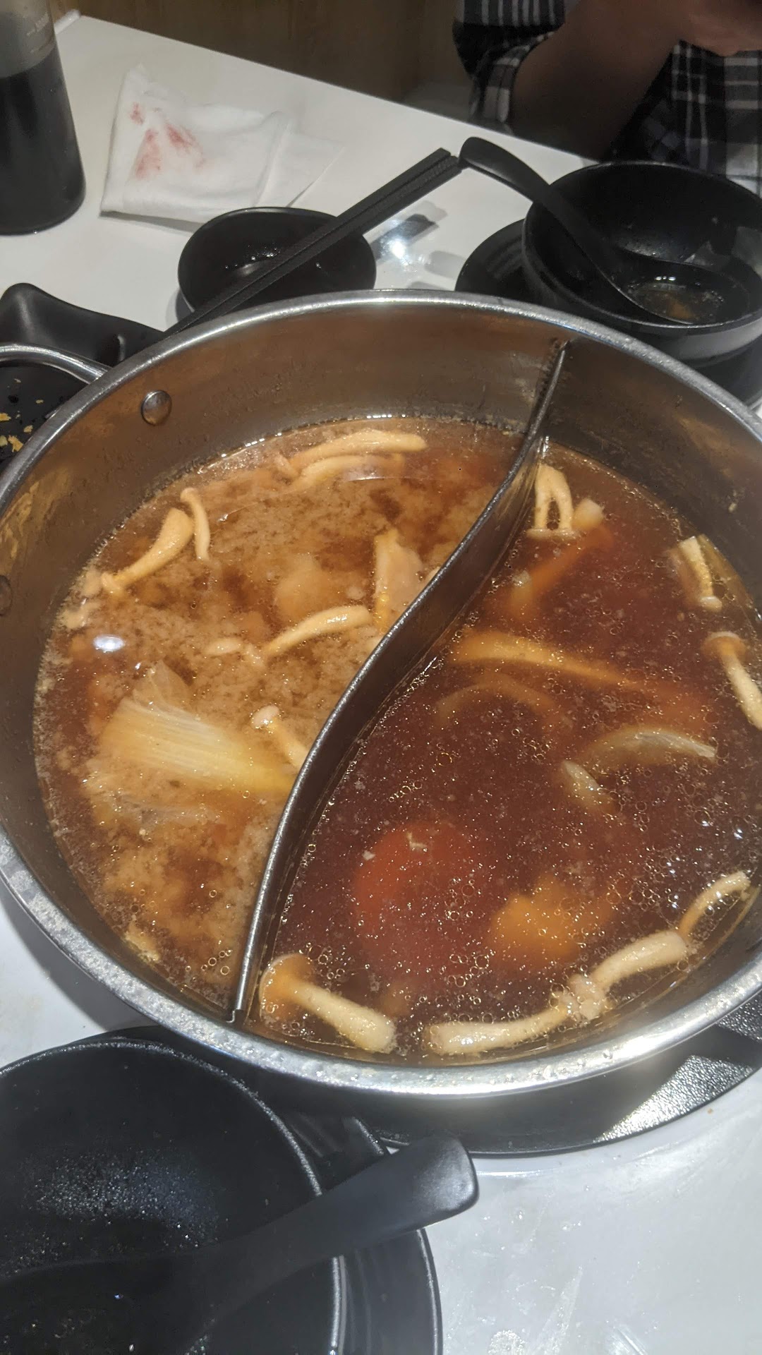 Về đồ ăn trước đồ ăn rất tươi và rất chất lượng. Thịt tươi, ngon, ngọt, không chê được chỗ nào, hải sản hơi nhỏ nhưng về độ tươi, ngon, ngọt thì như trên, không bàn cãi. Các loại viên rau các thứ còn lại đều rất đa dạng, ăn hết một vòng là cũng hơi đã đã mà không hề ngán. Các món phô mai cũng đỉnh ngon, béo vị phô mai nó real đã lắm mọi người, mọi người nên ăn các món phô mai khúc giữa cho cân bằng nha, ăn sớm quá dễ thấy đã, hong ăn thêm nổi. Miso thì thả rau, các loại viên, còn nước trong thì thả thịt sẽ là ngon nhất nha. Nước chấm thì có nước tương nhật thanh thanh nếu bạn muốn thêm chút mặn và sốt chua ngọt có mè hơi thiên chua chút xíu. Trên bàn cũng có ớt, ngò để nêm thêm. Cả hai lần mình đi đều không có cơm trắng, không biết là hết hay không có, nếu không có thì có thể bỏ khỏi menu mà. Hoành thành mình ăn cả 2 lần thì bột có hơi vị chua, mong nhà hàng cải thiện.