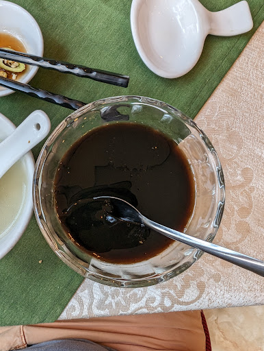 The host and waiter staff were very good. Some staff are rude. I.e. cleaning lady and the lady at the counter didn't have the time of day for us to look up or not mop over us. AC was mild but better than nothing. The iced jasmine tea was good. The food was good too although it was on the bland side if I was to be picky. Lots of dinner items but no dim sum, which was what I was hoping for.