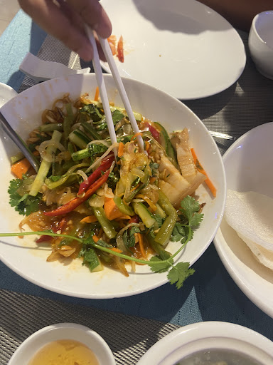 🦪 We started with a beautifully presented razor clam dish topped with crushed peanuts, spring onions, and herbs – a unique and tasty combination that instantly set the tone for the meal. 🦑 The fried baby squid was crispy, well-seasoned, and cooked to perfection. 🦀 We also enjoyed another fried seafood dish (possibly soft shell crab or another variety of squid) that had the perfect crunch and went so well with the dipping sauces provided. 🍜 The highlight for me was the glass noodle stir-fry with seafood – light, flavorful, and packed with vegetables and juicy seafood bites. 🥗 We ended with a refreshing seafood salad served with rice paper and fresh greens – a healthy and flavorful end to a fulfilling lunch. 🍹 The mocktails and drinks were not just refreshing but also beautifully presented with cherries, herbs, and fun straws – definitely Instagram-worthy!