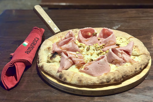 The cozy outdoor dining environment sets the perfect ambiance for a relaxed meal. The menu offers a good range of authentic Italian dishes, with a specialty in handmade, fresh pasta that is simply delightful. The pizzas are also excellent; I particularly enjoyed the Mortadella and Pistachio Pizza, which features a mozzarella base, mortadella, pistachio, balsamic reduction, and fresh basil. It was a delightful combination of flavors.