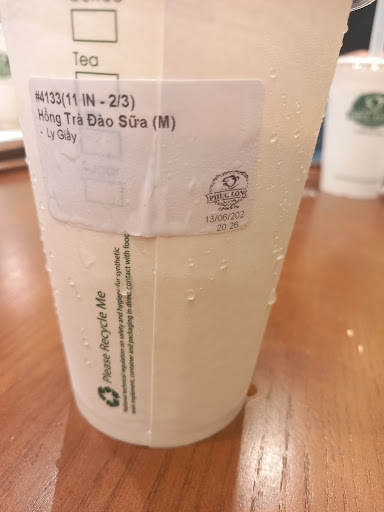 Read moreMình mua 2 ly trà vải, đội mũ bảo hiểm đứng đợi đem về. Các bạn nhân viên vừa làm vừa cười, ok không sao cả. Kế đó, mình thấy đơn khá nhiều, đông khách đợi, pha đến ly của mình thì mình thấy hết vải. Mình bắt đầu thấy khó chịu rồi. Sau đó mình thấy 1 bạn nam đi tìm hộp vải ngâm, khui, đổ ra một hộp nhựa. Mình tưởng là bạn đó sẽ làm cho xong ly của mình, nhưng không?! Bạn đó quay qua quay lại tìm rồi khui thêm 3-4 hộp vải khác, luống cuống đổ vải vào đầy hộp nhựa rồi mới múc cho mình. Bạn nữ giao nước đứng thấy mình nhìn chằm chằm nên phải chạy vào phụ một tay múc vải làm cho xong 2 ly của mình, vì thấy mình đợi quá lâu. Chắc phải 20 phút :) Thiết nghĩ PL cơ sở này train nhân viên lại giúp, ưu tiên thời gian chờ đợi cho khách giúp. Mình mua lúc 19h30 ngày...