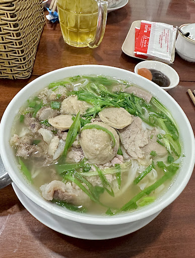 Mình đi ăn sáng ở quán vào ngày đưa người thân ra sân bay, tấp vô ăn sáng vì nghe tài xế bảo quán phở này ngon lắm vì thấy ngoài cũng có nhiều xe đậu. Quán nằm mặt tiền đường phan đình gót, có chỗ đậu xe hơi, không gian bên ngoài có quạt và phòng máy lạnh. Mình đi 7 người, gọi 7 tô phở đầy đủ giá 85k có lưu ý lấy nước lèo trong. Trong tô của mình gồm có: thịt nạm, bắp bò, bò tái, gân, bò viên. Đây là ý kiến cá nhân của mình về phở ở quán: khẩu phần ăn nhiều, bánh phở dẹp, các loại thịt rất mềm mọng nước, nước lèo trong mùi bò thơm nhẹ không đậm vị hồi/quế/hạt ngò/đinh hương/trần bì, hành lá nhiều. Phần sốt chấm có tương ớt bắc nổi tiếng xưa giờ, tuy nhiên phần tương đen lại không quyện với tương ớt vì tương đen thiếu độ ngọt còn tương ớt thì quá chua cay nên chấm thịt không hài hoà lắm. Mình khá ấn tượng với món phở tại quán. Nhưng đáng tiếc quán sử dụng bột ngọt MSG quá nhiều cả xe nhà mình ăn xong tầm 30 phút là cổ họng khô, nhức mỏi cả người khó chịu, phải uống rất nhiều nước suối tại sân bay. Hi vọng quán tiết chế lại sử dụng bột ngọt MSG Mình tôn trọng văn hoá ẩm thực từng miền nên không so sánh phở miền nào ngon hơn miền nào chỉ là phở nào phù hợp với khẩu vị của mình hơn. Quán nào ở vn không sử dụng bột ngọt (MSG), nếu bận rộn cần ăn bữa lót dạ thì ghé quán. Còn sợ say bột ngọt có thời gian thì tự nấu ở nhà...