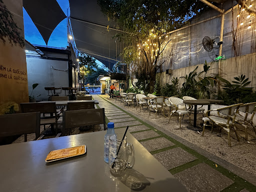 Không gian quán có ngoài trời khá rộng và thoáng, có khoảnh vườn rộng rãi có bóng cây xanh. Bên trong có phòng máy lạnh, nhưng hơi tối.