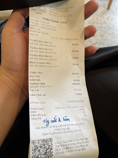 Read moreBữa mình có ghé phúc long và kêu ba ly nước, nv thì 3-4ng mà làm có 3 ly nước gần nửa tiếng mới xong trong khi đó quán không hề đông . Đứng trong thì cười cợt không hiểu các bạn làm gì mà pha có mấy ly nước nó lại lâu đến vậy . Đã thế hôm mình đi , không biết là nv hay bạn của nv quán tới chơi vì mình không thấy bạn đeo tạp dề của quán, chuyện ko có gì để nói nhưng tới giờ gần đóng cửa thì bạn đó ra mở vòi nước để rửa sân như mình nói ở trên vì bạn ko phải nv của quán bạn mở vòi nước mà ko nhìn hay mắt bạn ở trên trời thì mình không biết , bạn để hướng vòi nước bắn vô người mình rồi đứng đó nhe răng cười ngay sau đó thì bạn nv quán đi ra rồi hai bạn đứng đó cười cợt . Không hiểu các bạn tới quán làm pv hay để lmj nữa ( đề nghị quán training lại nv đi nhé thấy cũng nhiều bài viết đánh giá về thái độ lề mề...