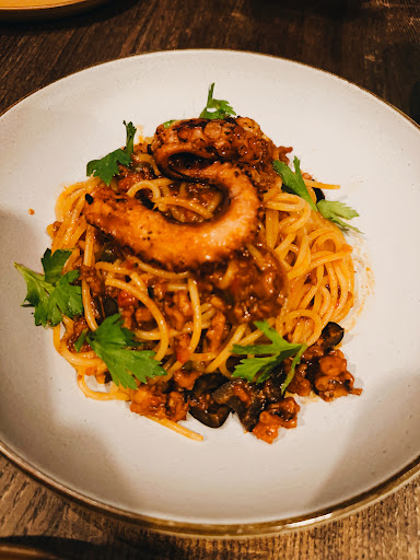 The architecture of the place is mixed between classic and modern bringing a cozy as well as warm atmosphere .The food is being made instantly so customers have to wait at least 20 mins to be severed. We ordered a salad , a sashimi with cheese and lastly a pizza with burrata cheese and ham.