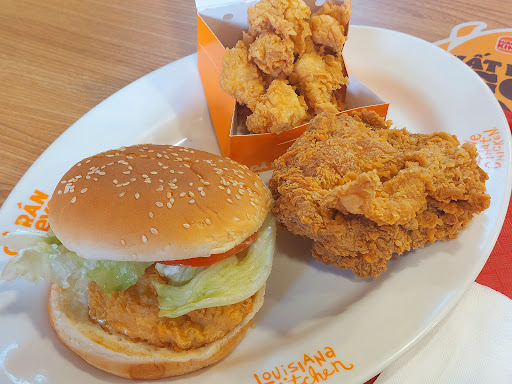 Went for lunch on a weekday. The staff are friendly. The menu has pictures and no English translation. I ordered the set with a sandwich, a piece of chicken, and popcorn chicken. The sandwich was mediocre. The fillet was half the size of the bun and half as thin as the bottom bun. The bun was stale. The popcorn chicken was cold, but the batter was crispy, and it was a decent size portion. The piece of chicken was large, with a nice crust and plenty of meat, but it was dry. I added the meat to fill up the sandwich. It was my first Popeyes experience, probably won't return. Paid...